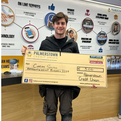 - Must provide a letter from the company/business confirming the apprenticeship. Letters must be on headed paper and can be emailed to us at membernotice@palmerstowncu.ie or dropped in the office.